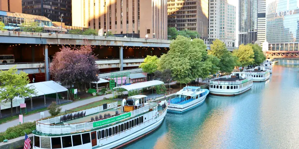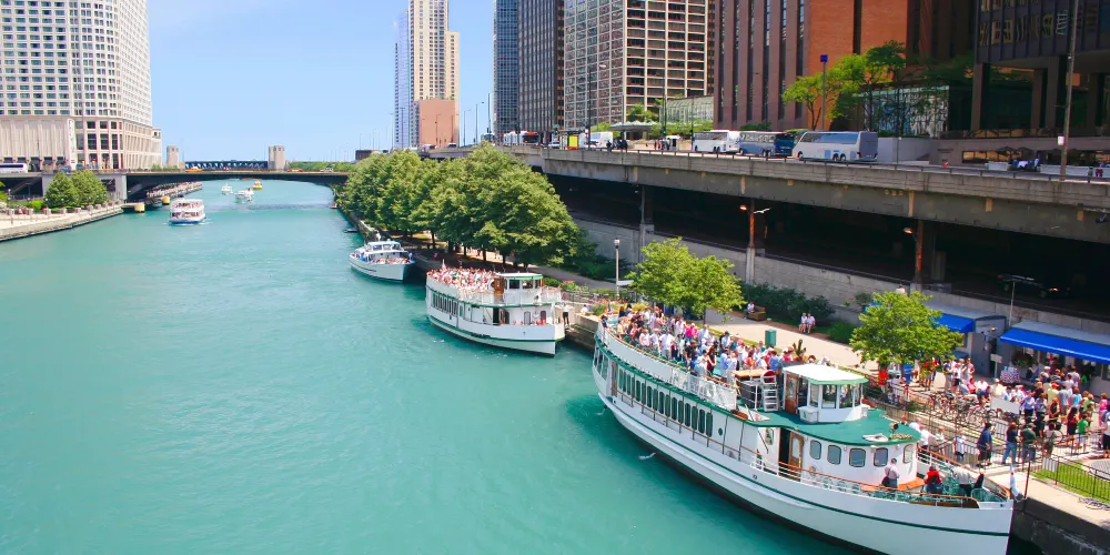 沿著芝加哥河遊覽,除了坐船之外,還能選擇河邊漫步 。遊客能近距離欣賞兩岸林立的高樓大廈,感受其宏偉壯觀,川普大樓、箭牌大樓等地標便坐落於此。沿途設有許多休閒區域,餐廳、咖啡廳、酒吧錯落分佈。藝術雕塑、紀念碑也散佈其間,為旅程增添藝術與歷史氛圍。又或在指定區域租一艘皮划艇,從別樣視角領略河畔風光。