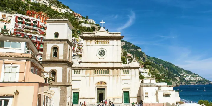 波西塔諾鎮上最有名的景觀。在教堂內部,經典的輪廓被頂上帶有鍍金的愛奧尼亞式大寫字母的柱子打破,長有羽翼的天使從每個拱門向下窺視,陶瓷穹頂。主祭壇上是13世紀的拜占庭風格的黑聖母瑪利亞和孩子。
