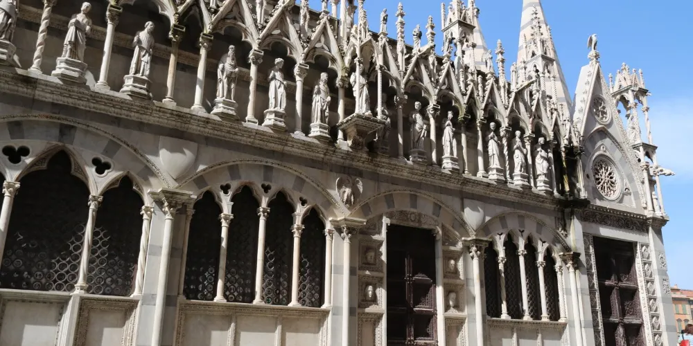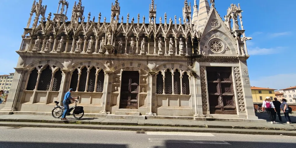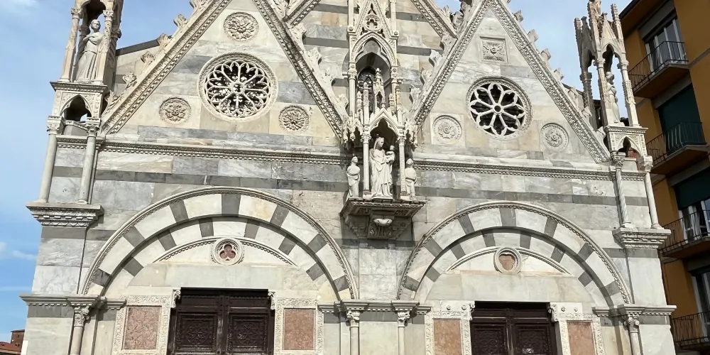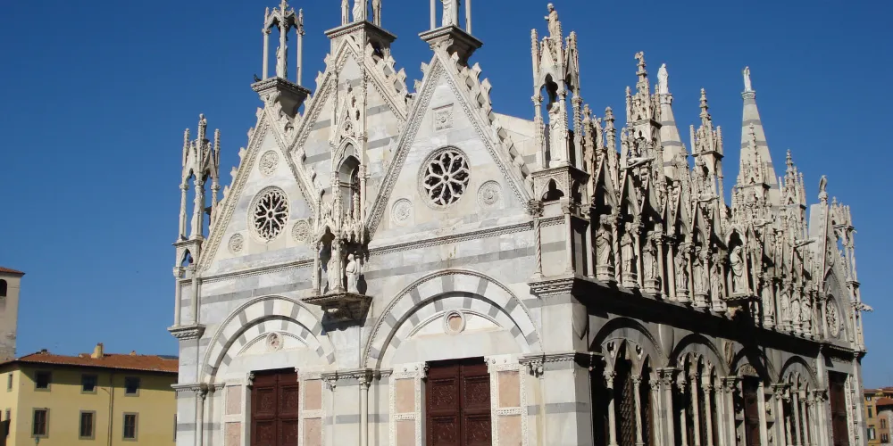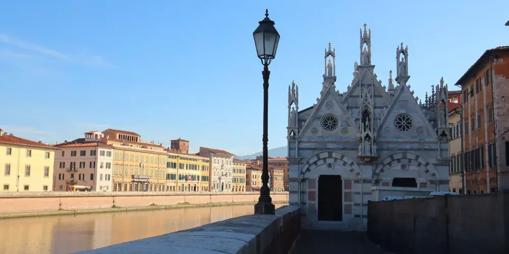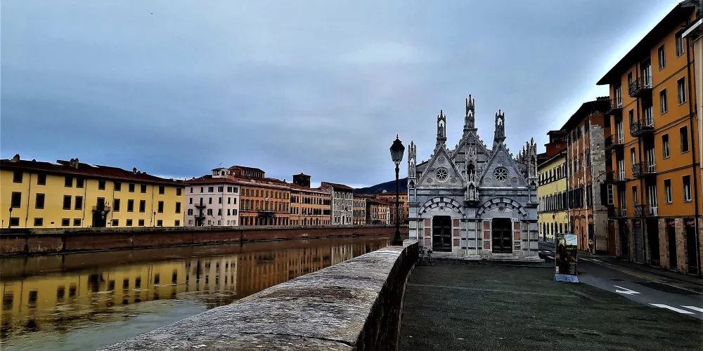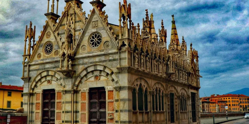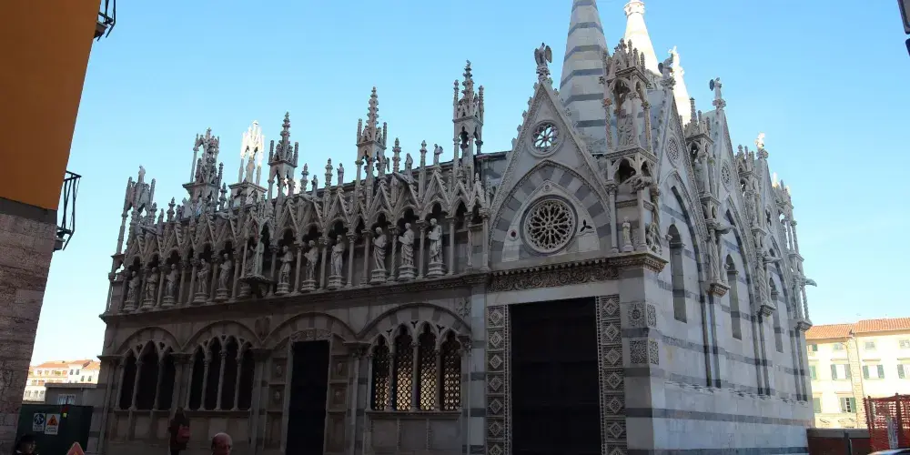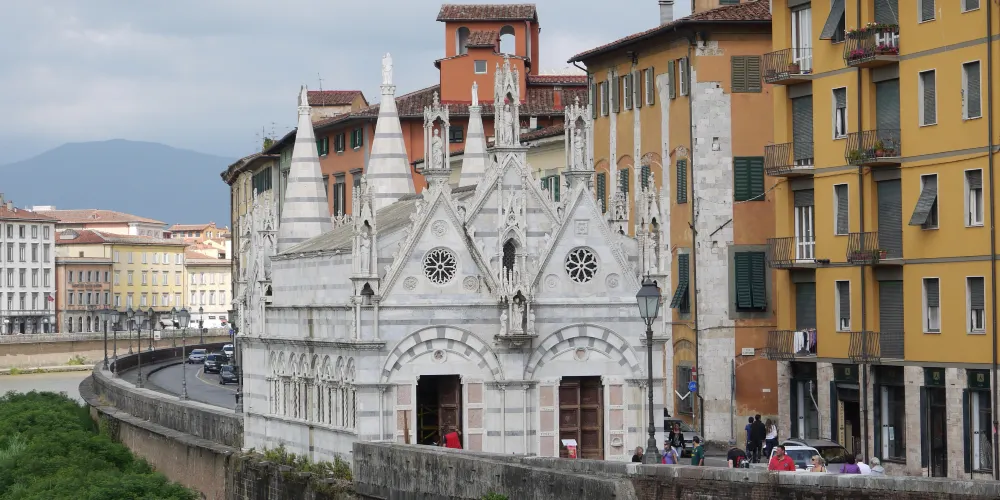 聖母瑪利亞斯皮那教堂是一座比較袖珍的教堂,位於阿諾河沿岸的中橋旁。這座教堂充滿了濃鬱哥特式風格格,要是看慣了許多恢弘的大教堂,可以來這裡欣賞一下這樣別具一格的小教堂。