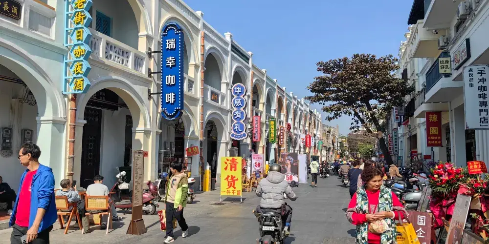 赤坎民國風情街位於廣東湛江赤坎區和平路,是一座融合了多種文化特色的旅遊景點。這裡建築風格獨特,既有十九世紀末、二十世紀初歐式風格建築,又有嶺南騎樓建築,形成了別具一格的 “南洋風格建築”。走在風情街上,彷彿穿回到了民國時期,街道兩旁的騎樓建築,一樓部分建成人行道,二樓及以上樓層 “騎” 在一樓之上,為行人遮風擋雨。