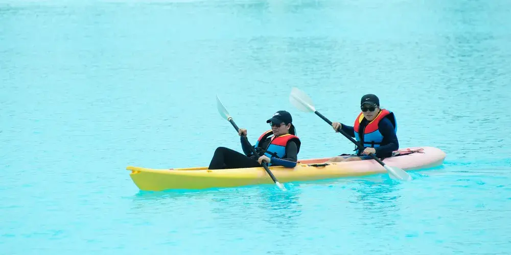 這裡有各式各樣的娛樂和體育活動,適合所有年齡的人從早到晚參與。熱愛大自然的人可以乘坐沙灘車穿過土路,划皮艇或乘平底船遊覽紅樹林。這裡的水晶潟湖佔地6.3公頃,是東南亞較早的人造海水潟湖。