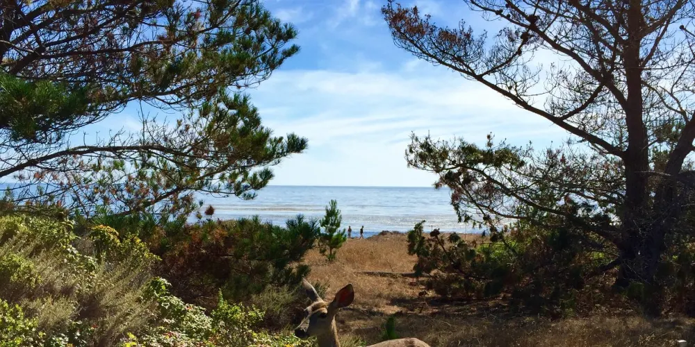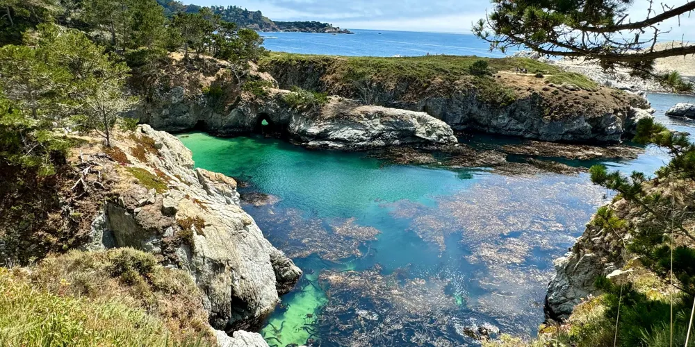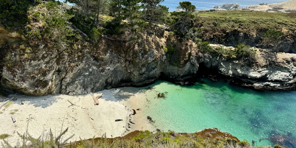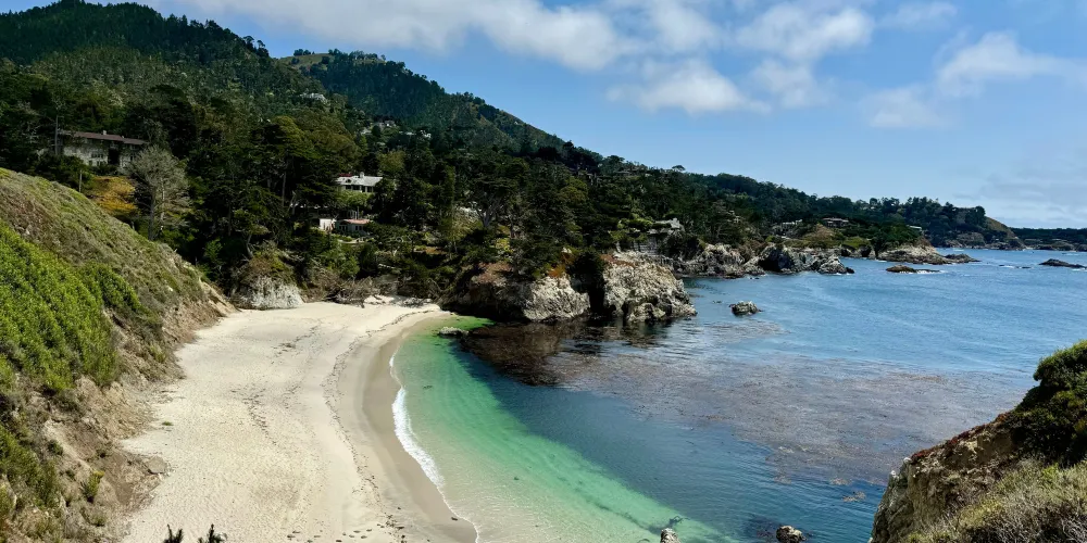 則評價位於加州的海邊小鎮卡梅爾南邊,是加州的陸地往太平洋裏伸出的一個角,緊鄰1號公路。這是一片開闊的海灘,景色非常美麗,水天相接,有佈滿鵝卵石的海灘,也有鋪滿柔軟白沙的小塊海灘,是漫步、野餐的好地方。