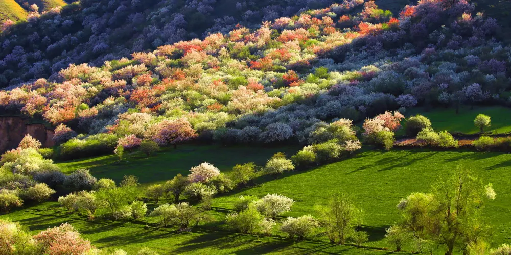 中華福壽山旅遊區位於伊犁州霍城縣大西溝鄉境內,是集生態觀光、文化體驗、休閑度假、修身養性、科普探險為一體的綜合旅遊區,天山松濤、高山草甸、奇花異草、睡佛古廟,自然山水與厚重多元的文化相伴,是人與自然和諧的樂園,是養生度假的的福地。中華福壽山景區是國家AAAA級景區,早在公元1221年道教龍門派創始人丘處機道長就專程造訪了福壽山,在這裏講道、練功。因此清朝時期這裏就成為新疆大的道教活動場所。這裡是世界野果類植物的天然基因庫,是亞洲野生櫻桃李生長地,被國家命名為“中國野生櫻桃李之鄉”,景區內生長着各類野果約60餘種,以野蘋果、野櫻桃李、野杏、野山楂、野核桃為主。景區四季景色迷人,沿着環山棧道步行,可將大西溝的全貌盡收眼底。
