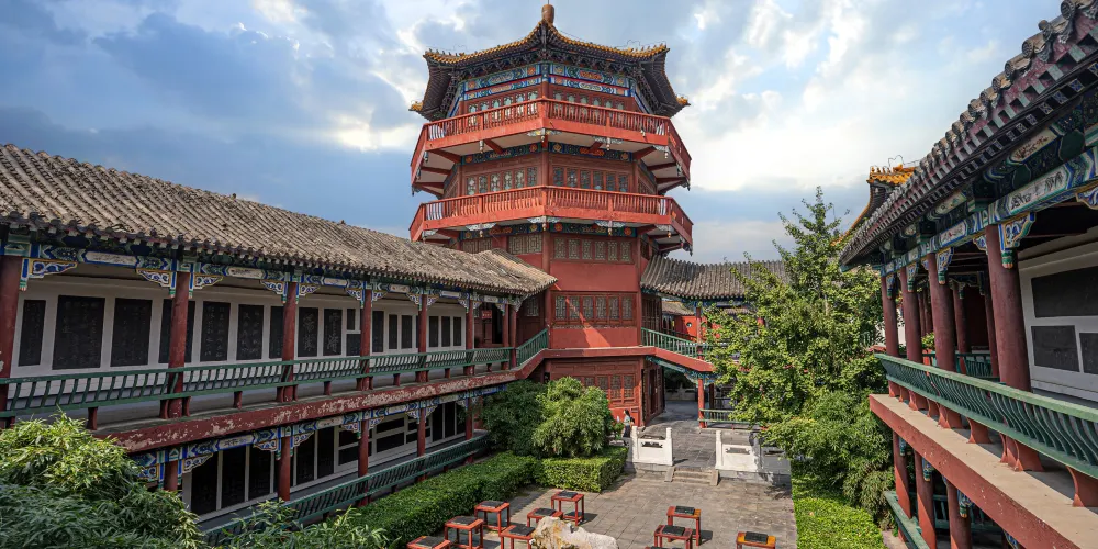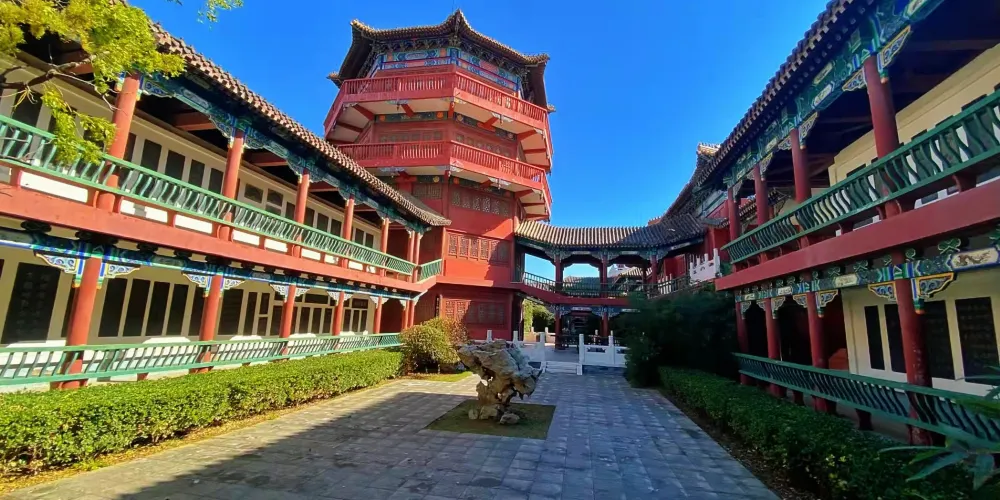 楊府建築主體有楊家府衙、楊家花園、演兵場三部分,其中楊家府衙是楊府的主體部分,依次建有大門、照壁、鐘鼓樓、天波樓、東西配殿、後殿等建築。在這裏,遊客可以看到楊家將羣塑、佘太君廟、楊家兵器等大量實物資料,還有歌頌楊家將忠心報國的大型羣雕和祭祀楊家將的孝嚴祠。府衙中的天波樓,是仿造當年的 “清風無佞天波滴水樓 ”,在一樓大廳內設有羣雕 “ 楊業發兵幽州救主 ”,二樓有羣雕 “ 佘太君楊門選將 ” 。