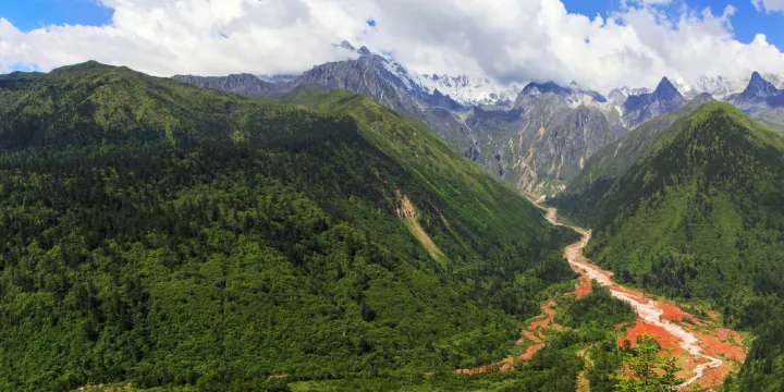 中國紅石公園位於甘孜藏族自治州瀘定縣。該公園是海螺溝六絕之一,清澈溪水的兩岸堆積的全部都是紅石,從觀景台向下看去是非常壯觀的景象。紅石上佈滿了紅色的微生物,它的形成需要滿足氣候、海拔、空氣質量等因素,所以在紅石公園可以感受到無污染的空氣和溪水。