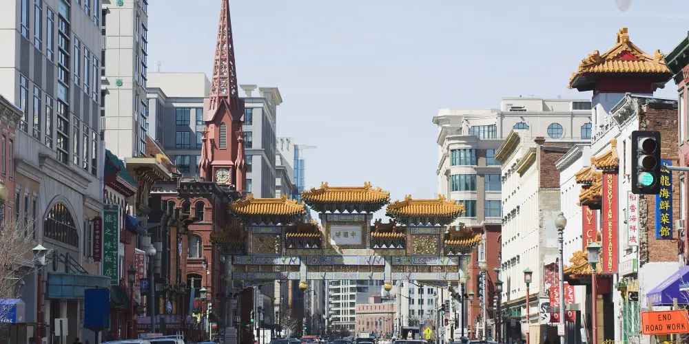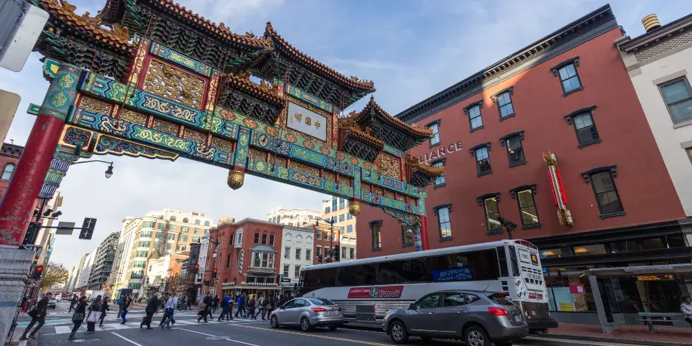 這裡是華盛頓特區中較富中國傳統色彩的歷史街區,其中惹人注目的木結構牌樓,官名“友誼牌樓”。在這裡不僅有很多中餐館,還有很多家亞洲風味的餐廳,終日人頭攢動,熱鬧非凡。每當中國傳統新年春節的時候,這裡還有舉辦傳統的舞龍舞獅等慶祝活動,漂泊海外的華人在此歡聚一堂。