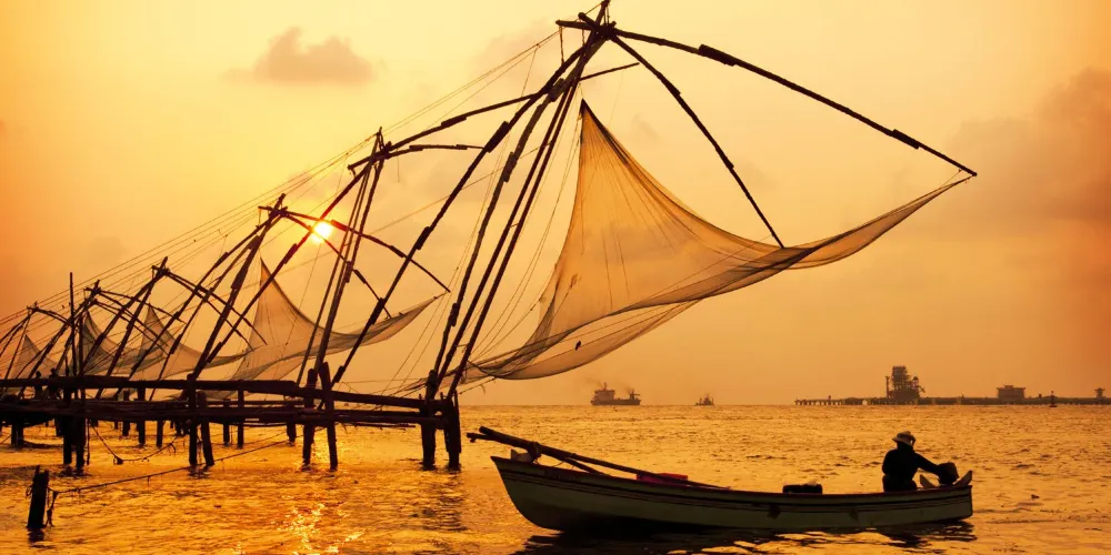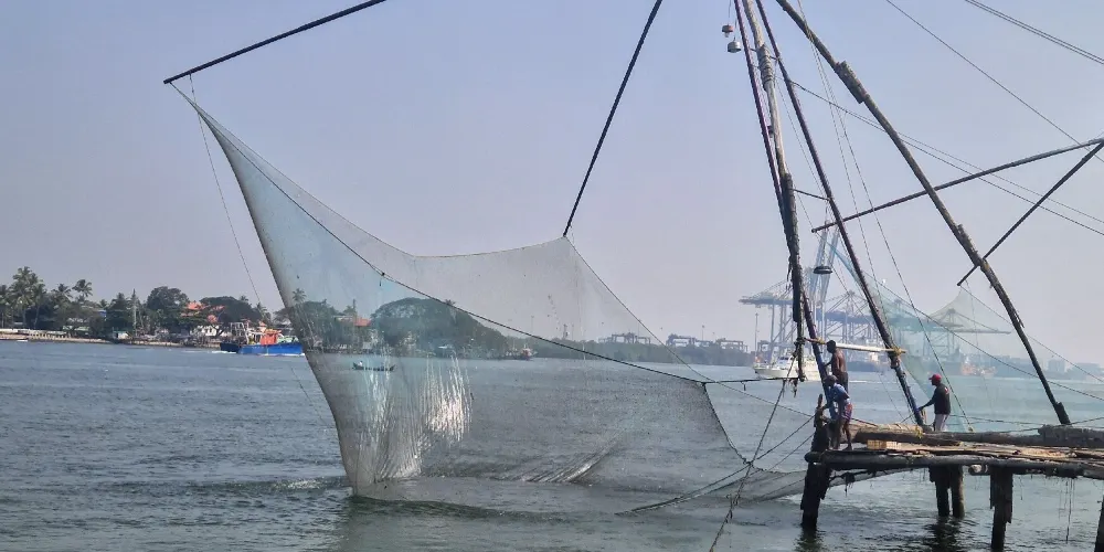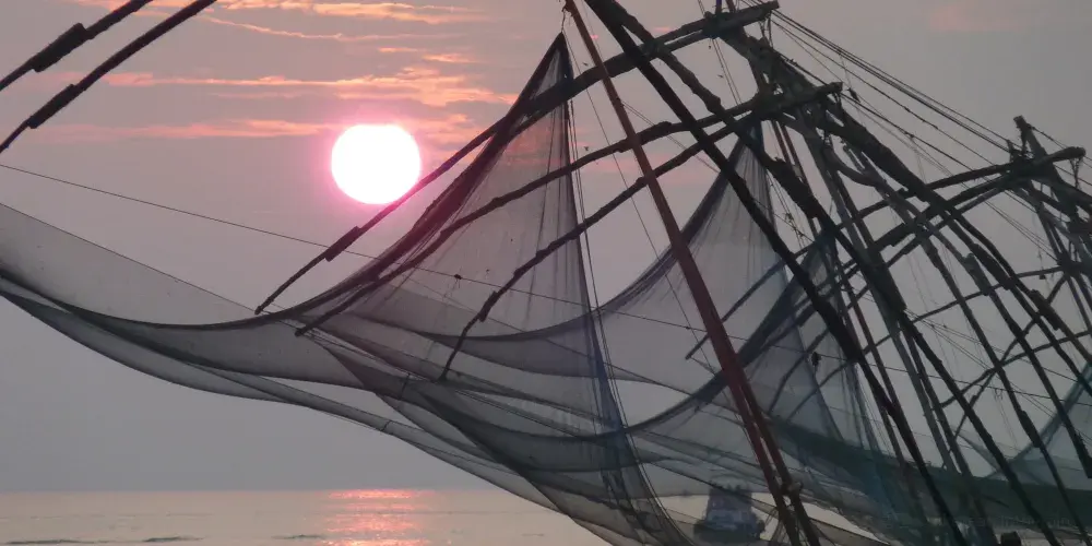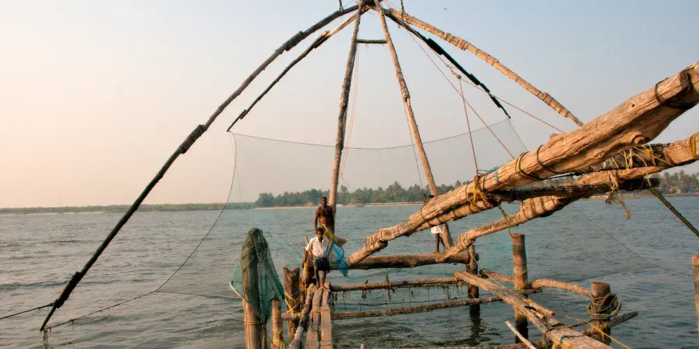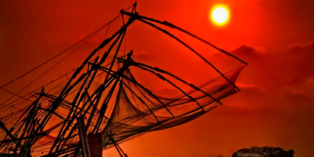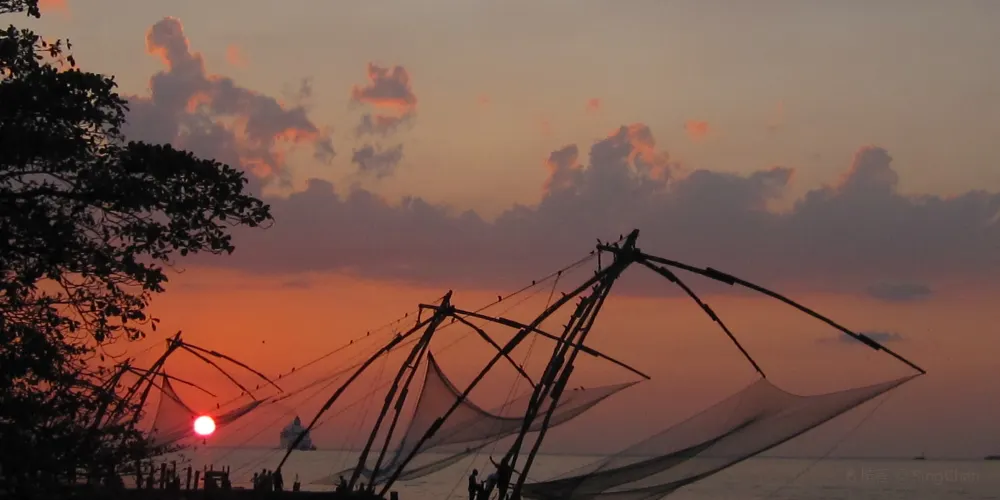 中國漁網位於印度科欽北邊臨海處,據說是當年鄭和下西洋的時候傳到這裡的一種獨特的捕魚法。將漁網沉在海中,利用槓桿原理隨時可以提起的漁網。當地的漁民至今都用這種漁網打漁謀生。漁網的岸邊是個小型集市,以水產品為主,在這裡可以吃到美味的海鮮。在這裡看日落也是不錯的,漁網在夕陽下格外的美麗。