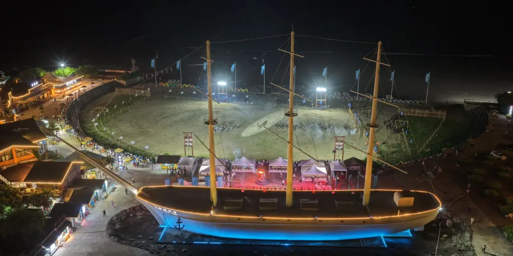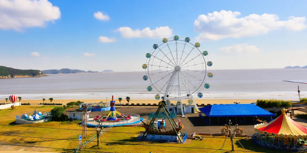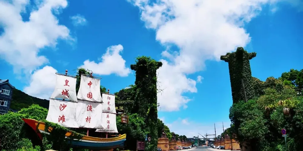 中國漁村位於寧波象山石浦,是一個發展得十分成熟的度假海灘。這裡不僅有自然風情的沙灘,還有遊樂場、歐美風情小鎮等。常常會有新人來此取景拍婚紗照,也有許多周邊遊客來此吹海風吃海鮮,非常適合週末假期來此休閒度假。