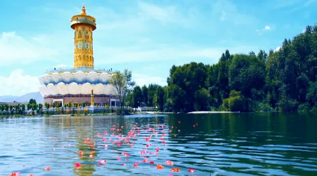 天下黃河貴德清,黃河清澈的一段從青海省貴德縣蜿蜒而過,貴德縣屬於進藏大門,藏傳佛教這顆藏族文化中璀璨的明珠在這裏熠熠發光。底藴深厚的黃河文化映襯着藏傳佛教文化迸進出耀眼的光芒,為了更好地展現藏傳佛教文化,青海省貴德縣旅遊開發管理委員會在黃河邊上精心打造了一處大型人文景觀——中華福運輪。歷時兩年工期修建完成,佔地面積90畝,建築面積12000平方米。佇立在黃河邊上的中華福運輪不但在展示黃河文化,打造青海文化旅遊新景點方面擁有重要的作用,而且在祈福祖國繁榮昌盛,各民族同胞和諧安康方面也具有十分重要的意義。同時讓宗教文化在這裏綻放出迷人光彩,給了當地藏族老百姓一個寄託信仰的平台,也為來往的遊客述説黃河邊上的藏傳佛教文化。中華福運輪具有鮮明的藏族風格,黃河靜靜流淌,倒映着巨大的轉經筒。我們可以在中華福運輪景區展廳內領略到博大精深的藏傳佛教文化。巨大的轉經筒承載了歲月的祝福,當虔誠的佛教信徒手持轉經筒,經綸在陽光照耀下閃爍光芒的一刻,無疑綻放出了神聖的佛光。一段黃河,一座古城,一箇中華福運輪,讓貴德成為了遊者心中的旅遊天堂。