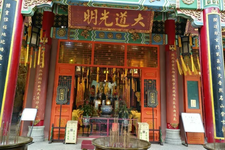 青松觀在香港九龍西部屯門的青山麒麟圍。由陸吟舫等人創立於1949年,屬全真龍門派,道派溯源於廣東廣州至寶台。殿內供奉主神為呂純陽,兩側有王重陽和邱處機祖師塑像陪祀。神龕雕刻精美,飾品古樸典雅,配以繁花燈彩,別有嶺南情趣。