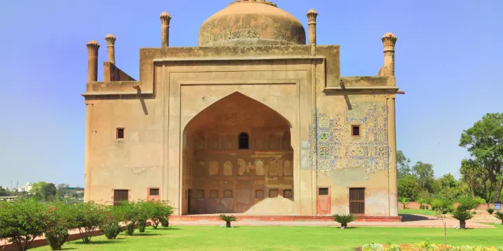 這是一位波斯詩人在亞穆納河畔的陵墓,所以又簡稱為“詩人墓”。這位詩人是Afzal Khan,在沙賈汗統治時期位居高位。陵墓建造於1628年至1639年之間,是阿格拉現存的唯一的一個純波斯風格的建築。外表是明亮的藍色瓷磚,裡面的內飾採用花卉圖案。但可惜如今它以漸漸被忽視,隱藏在一個綠樹成蔭的街道中。即是經過歲月的洗禮,它已不不複從前那麼光彩奪目,但是那些藍瓷磚能夠讓你想象它過去是個什麼樣子。
