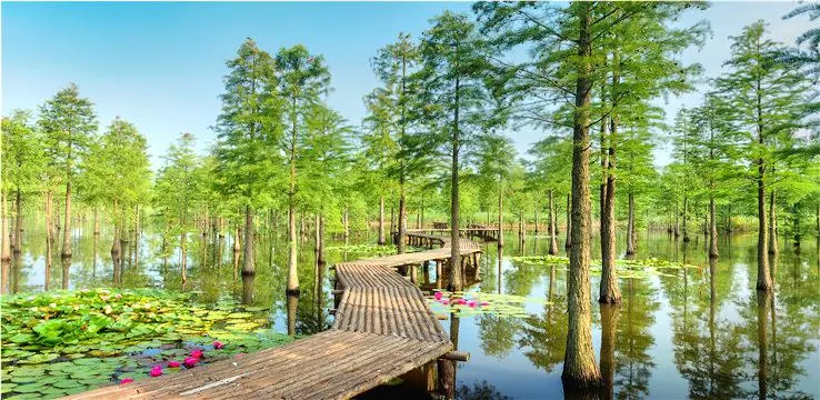 池杉湖國家濕地公園位於安徽省滁州市來安縣雷官鎮與江蘇省南京市六合區程橋街道交界處,總佔地面積 5800 畝,其中江蘇省 3600 畝,安徽省 2200 畝。公園地理位置優越,交通優勢明顯,距離南京城區 50 公 裏,滁州市區 70 公里,合肥市區 190 公里。 池杉湖濕地公園因生長在一千多畝水域中的五萬多棵池杉樹而得名,這片種植於上世紀八十年代初的池杉林,經過近四十年的自然生長和發育演替,現已形成水中有林、林中有鳥的“水上森林”自然景觀。 根據調查,濕地公園共分佈維管植物 60 科 154 屬 194 種;魚類 8 目 15 科 43 種;兩爬類 4 目 8 科 18 種;獸類 5 目 5 科 13 種;鳥類 13 目 32 科 102 種,其中國家二級重點保護動物 13 種。