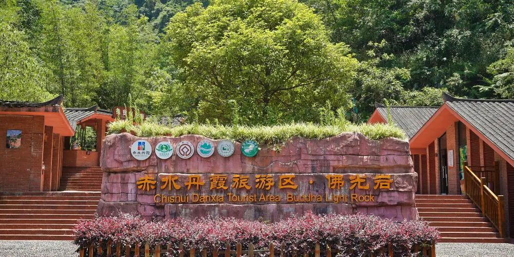 赤水丹霞旅遊區·佛光岩素有“赤景一絕”美譽,以大白岩和五柱峰為主體景觀,出露地層全是侏羅紀、白堊紀河湖相紅色沉積岩。丹霞地貌、五柱峰、白龍瀑、等30多個靚景奇觀,由小金驛溝、世外桃園、太陽谷等景段構成。是赤水國家重點風景名勝區的重要組成部分,不可多得的精品自然生態旅遊風景區。