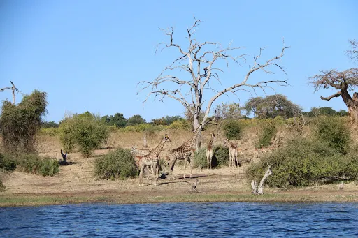 喬貝河(Chobe River),作為非洲南部一道靈動而壯麗的風景線,承載著大自然的雄渾與神奇,是博茨瓦納與納米比亞的界河,也是讚比西河的重要支流 。它發源於安哥拉中部高原的坦博山,一路奔騰蜿蜒,流域面積廣闊。河流流經之處,孕育了豐富多彩的生態系。在喬貝河週邊,繁茂的植被覆蓋大地,高大的樹木遮天蔽日,為眾多生物提供了棲息之所。這裡的動物種類繁多,令人目不暇給。乘船遊覽喬貝河,是感受其魅力的絕佳方式。遊艇緩緩前行,河水氾起層層漣漪,兩岸的景色如畫卷般徐徐展開。河道時寬時窄,時而似湖泊般開闊平靜,時而又有河汊、小島、沼澤、蘆葦、睡蓮點綴其中 。