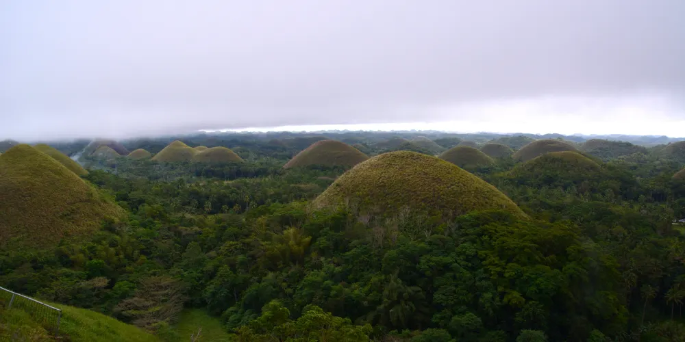 巧克力山位於薄荷島中部,是島上一處標誌性自然奇景,電影《哈利•波特》曾在此取景。巧克力山由上千作外形相似、高度不等的小山丘組成,每到旱季山上的草坪便會成為褐色,遠遠望去就像一顆顆巧克力。除了旱季,其它季節看到的巧克力山是綠色的。可以坐著摩托車上山也可以步行上去,頂端的觀景台有很好的視角。