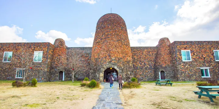 濟州島西歸浦市內的巧克力博物館是繼德國科隆之後,規模居世界第二位的巧克力主題博物館。博物館面積達1,500餘坪,整體採用因濟州奇妙的自然環境和常年累月的火山運動而生成的火山岩建成,造型融入了歐洲風格,看起來像一座異國的古堡。博物館入口出立著造型可愛的可可神,給遠方的來客們獻上一份甜蜜之感。博物館地下有1層,地上有3層,分別有主展示館、影像室、咖啡館、工作室、巧克力賣場等場所。雖然展示有巧克力的曆史、關於巧克力的各種常識的展示場也非常有趣,但受人們歡迎的還是可以參觀和製作巧克力的工作室。完成的巧克力作品,遊客既可品嘗,也可購買後帶走。