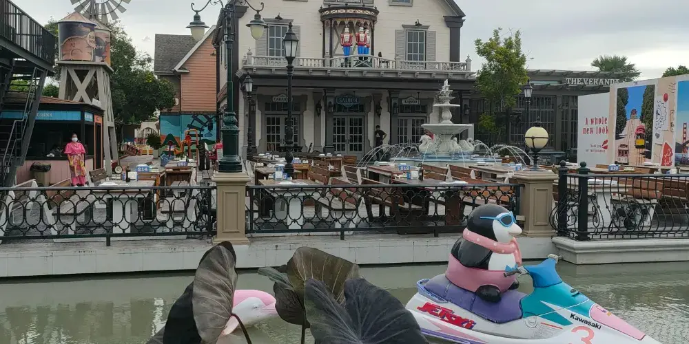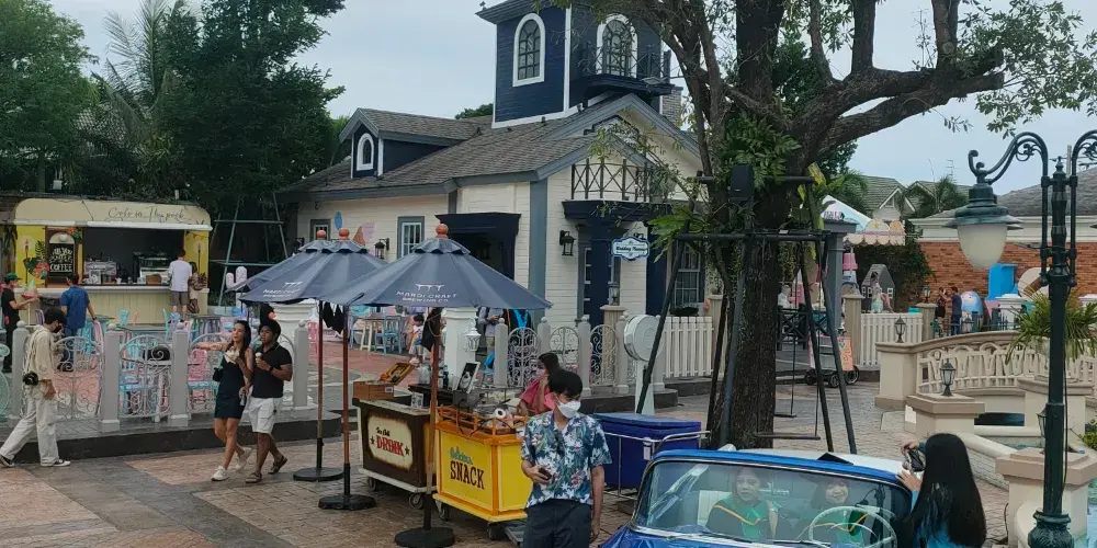 餐廳以歐式建築為主,風車、運河、燈塔、玻璃屋,異國風情濃鬱,彷彿置身於歐洲的某個小鎮之中,清新浪漫的環境非常有氛圍。餐廳的食物以泰餐和西餐為主,青木瓜沙拉、泰式酸辣蝦湯、檸檬蒸魚等美味正宗,餐後甜點巧克力冰激淩更是美味的誘惑。