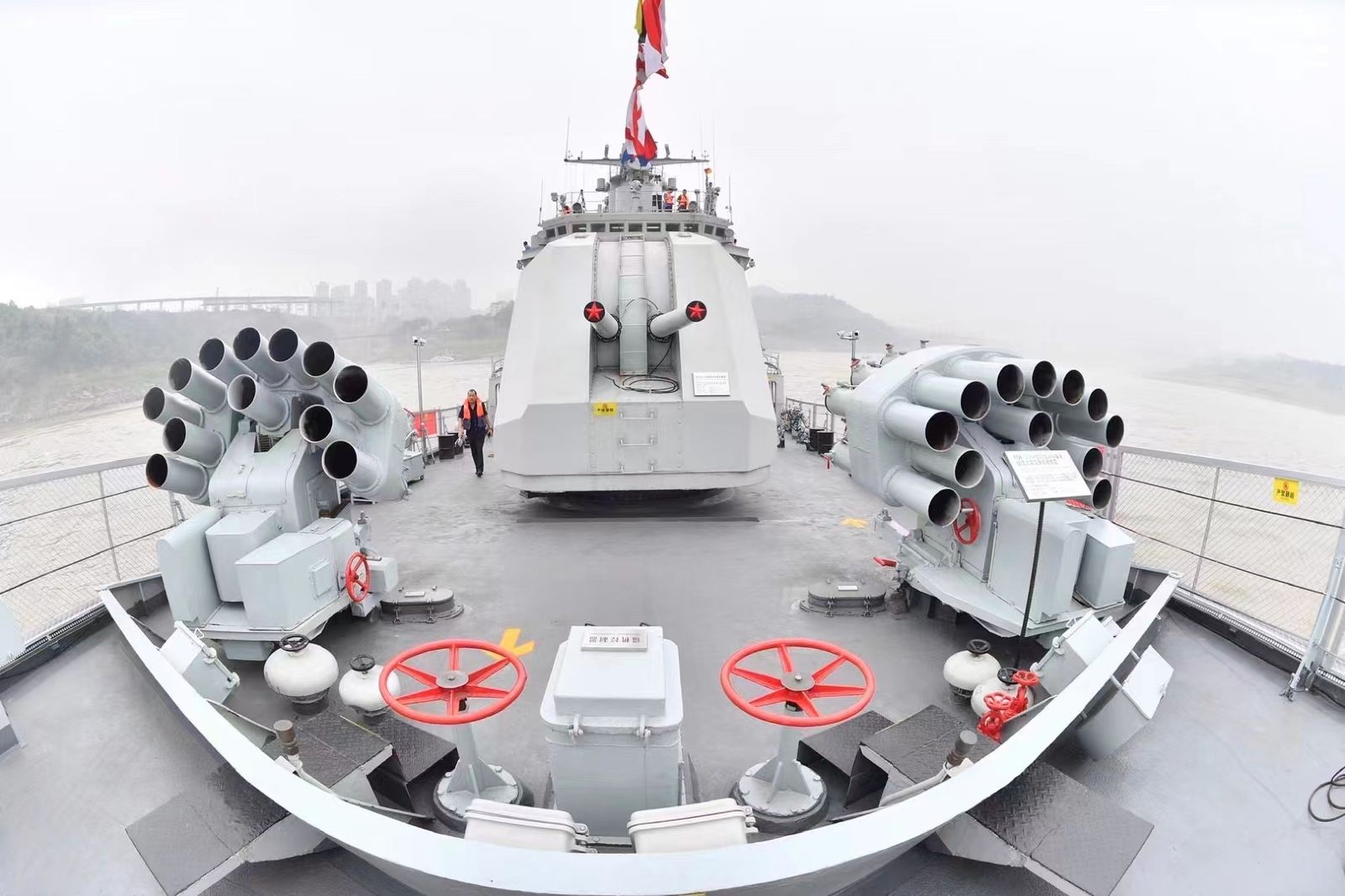 重慶建川海疆博物館(166艦)由重慶海軍博物館和166艦陳列館共同組成,166艦是中國研製建造的051G2型(北約代號:旅大Ⅲ級)導彈驅逐艦,是人民海軍首型具備作戰指揮功能的現代化驅逐艦。該艦於1987年10月31日在大連造船廠開工,1990年10月18日下水,1991年11月21日交付南海艦隊,1992年6月6日正式命名為「珠海」號,2020年8月28日在湛江退役。2020年10月23日,166艦進入重慶主城水域,在進行設備恢復和安全檢查後停靠重慶九龍坡區建設碼頭,2021年6月27日作為國防教育基地正式向民眾開放。正式亮相的166艦已完成主副桅杆、武器裝備、艦身漆面、舷梯、護欄、燈光、電子顯示屏等的復原和加裝,英雄艦的英姿得以重現。「海疆」二字,映照著166艦一生守護中國海域的堅定使命,向人們訴說著忠誠與英勇的深邃內涵。