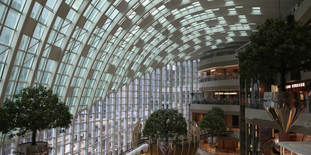 | “沐光森林”構建跨7層(B1層—L5層)、擁有高42米的立體垂直景觀,引入近300種熱帶雨林植物,包含生命樹、懸浮森林、花之瀑谷3大主題場景,以及12處互動打卡景點,共同建構了豐富的空間層次。 |
