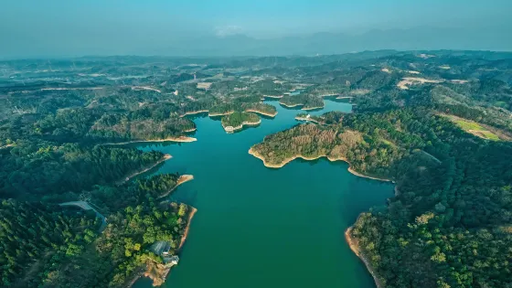 木魚島位於崇州市,因整體形似木魚而得名。島上曲徑通幽,島邊楊柳依依,登臨木魚閣,全湖風光盡收眼底。