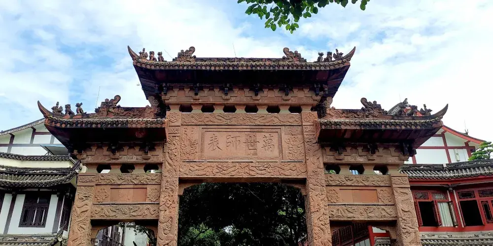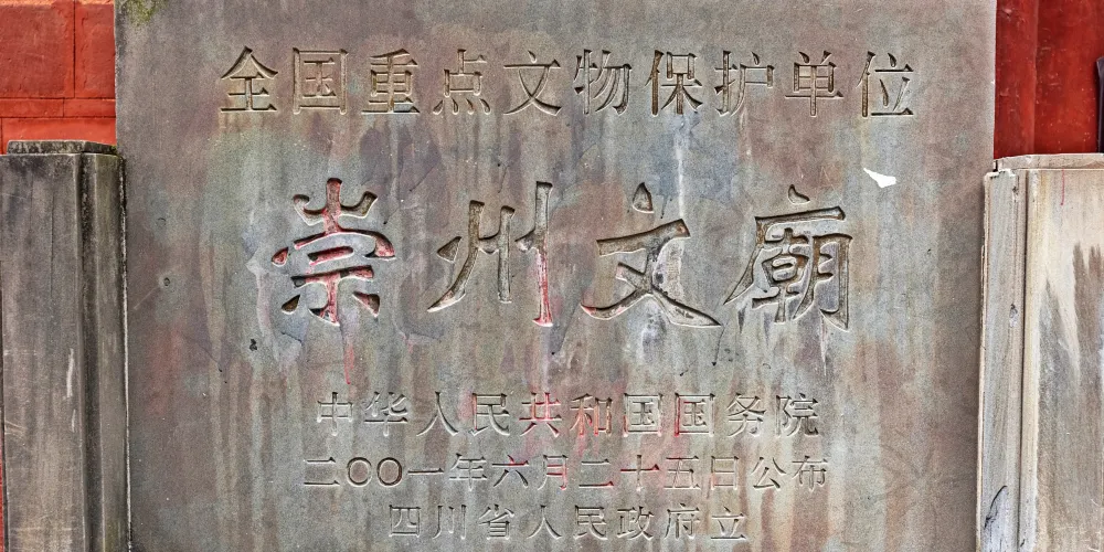 崇州文廟是四川省境內保存完好的四座文廟之一,始建於明洪武初,其主要建築有“萬世師表”等三座牌坊、“宮牆萬仞”照壁、大成殿、鐘鼓樓、啟聖殿、尊經閣。從1999年起,9月在孔子誕辰之日前後舉辦具有國際規模的孔子文化節。
