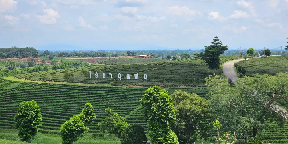 翠峯茶園,總佔地1000萊,於1977年起開園,至今已有近40年歷史,提供泰國優質的茶葉,客戶不僅遍布全國,如今名聲更響亮世界。翠峯茶園位於清萊府的山脈之中,鬱鬱蔥蔥的茶樹綿延山脈,很像中國的梯田,一行一列,整齊有序。