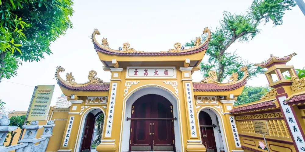 鎮國寺建於6世紀,是河内西湖邊尤為漂亮的古建築,且香火旺盛。院中有些小塔,裡面有座花枝招展、掛著紅燈籠的重簷古亭,再裡面是一些梵文高塔,中間就是那座高高的白佛紅塔。
