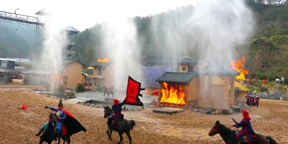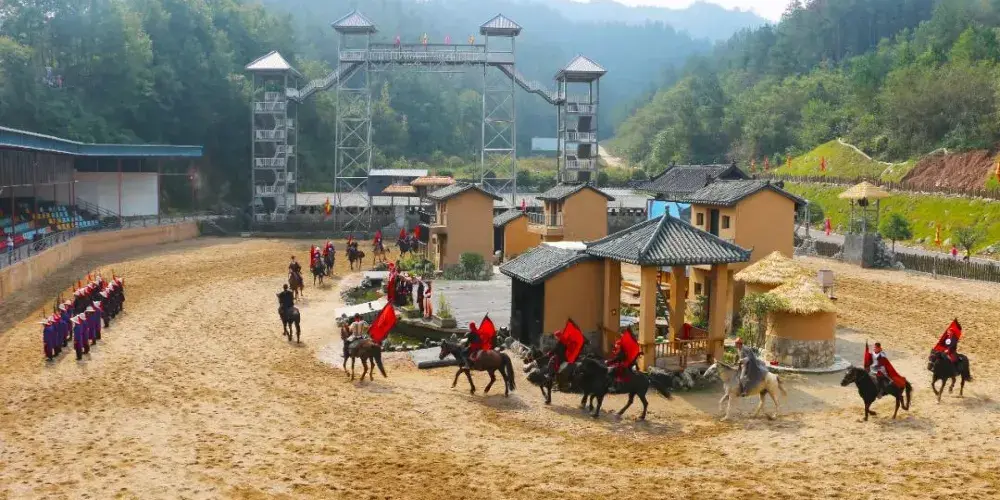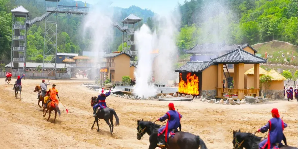 闖王寨(陽城驛)景區位於商南縣富水鎮,是一個文化生態綜合旅遊景區。真實展現闖王李自成在富水金鐘山一帶安營紮寨,養兵蓄鋭,娶妻生子,敬天愛民一系列史實和活動遺跡,突出反映闖王文化內涵,秦楚文化精髓,明清古風神韻和驛站古道風情。現已將李自成1638年至1641年在商南金鐘山安營紮寨、娶妻生子、練兵備戰的歷史事件編排為實景演繹劇“風雲闖王寨”,蔚為壯觀的馬戰實景演出,於每天上、下午各開演一場。演出由50名參加過國內外大型演出及影視劇表演的專業馬術演員參演,20多匹戰馬助陣,並加入了現場煙火的舞台特效,分為安營紮寨、厲兵秣馬、喜結良緣、鏖戰疆場、殺富濟貧、惜別山寨等六個篇章。