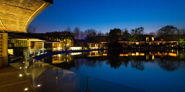 北京春暉園温泉度假酒店背靠風景迷人的温榆河畔,環境幽雅,空氣清新,彷彿使你置身於“世外桃源”之中。這裏擁有獨具特色的全天候湯泉泡池,户內外相通,既可在户內池中感受温暖,也可在户外仰望星空,呼吸新鮮空氣。