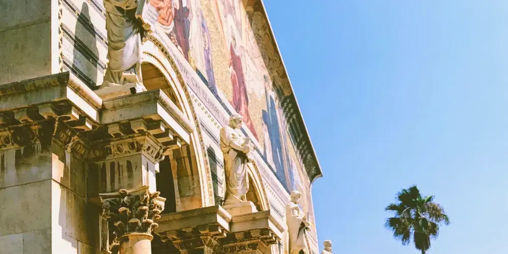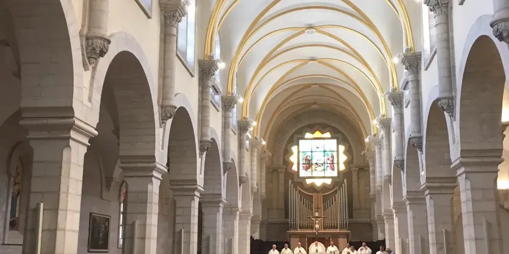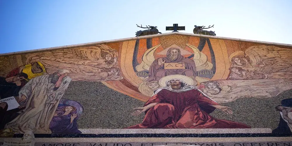 教堂建於1919年到1924年,使用了12個不同國家的基金,這也是其常用名萬國教堂的由來。每個國家的標誌放置於天花板的玻璃上,放在一個小圓頂內。教堂的前面有一排列柱,上面是現代的鑲嵌圖案,描繪耶穌基督象徵上帝與人類之間的連接。
