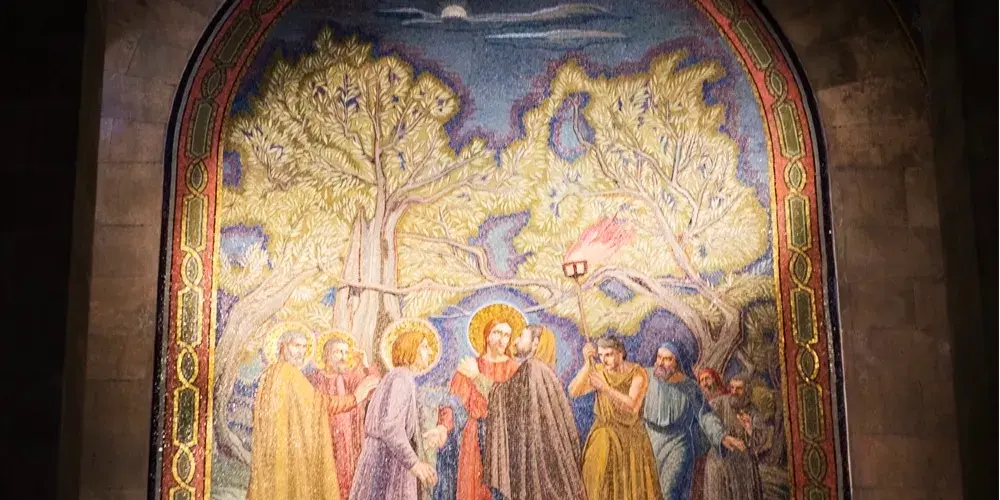 橄欖山下的「客西馬尼園」綠蔭環抱,「客西馬尼」希伯來文意為「壓榨橄欖」。這裡種的樹都是與耶穌同一時代的,耶穌被捕後一刻,曾到這裡來祈禱。