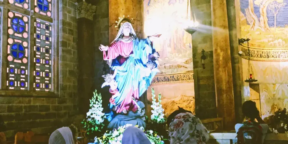現存教堂是建在兩座古代教堂的基礎上的,它們分別是12世紀十字軍教堂(1345年廢棄)和4世紀的拜占庭教堂(毀於746年地震)。