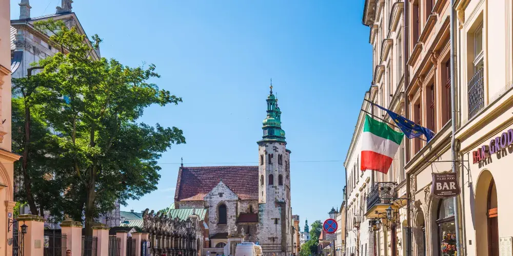 At the midpoint of Grodzka on the east side, Krakow, Poland (Stare Miasto)