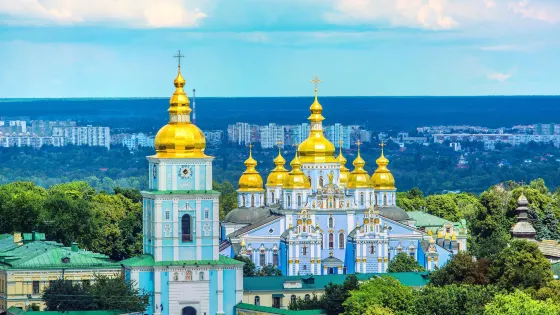 聖米迦勒金頂修道院為基輔的一座重要修道院,位於第聶伯河西岸,俯瞰著城市的商業區。始建於中世紀,包括大教堂、聖約翰餐廳、經濟門和鐘樓。建築的外觀在18世紀重建時改為巴洛克風格,而內部仍保持了原來的拜占庭元素,教堂內部有錯綜複雜的五層聖障,內牆上則有許多拜占庭鑲嵌畫和壁畫。修道院在1930年代一度被蘇聯政府拆除,烏克蘭獨立後得以重建。