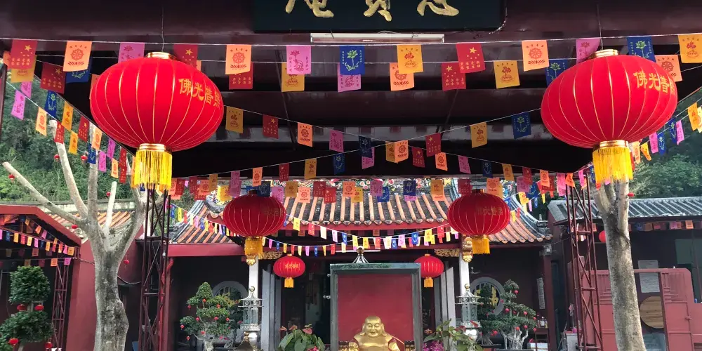 則評價淡浮院位於潮州磷溪鎮的硯峰山夏湖風景區,入口是一座聳立的大石牌坊,牌坊到正殿是三進石階,院內花圃簇擁著石雕麒麟、青獅、鐵牛等吉祥物。正殿建築穩重莊嚴,正中匾額“澹浮院”三個大字,是清朝末代皇帝之弟溥杰所書,門外掛的木刻對聯則是已故中國佛教協會會長、著名書法家趙樸初親題。
