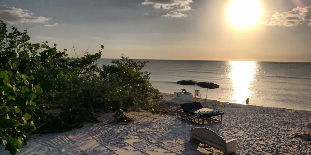 得米克海灘,位於弗羅裏達州,是一個景色怡人的海灘,這裏也是一個沖浪和浮潛勝地,遊客可以躺在躺椅上,一邊喝啤酒,一邊欣賞沙灘美景。