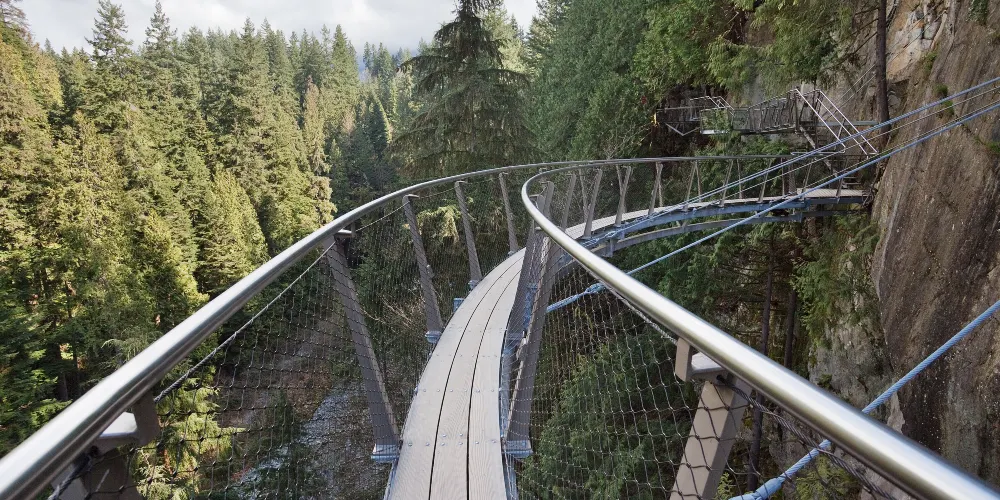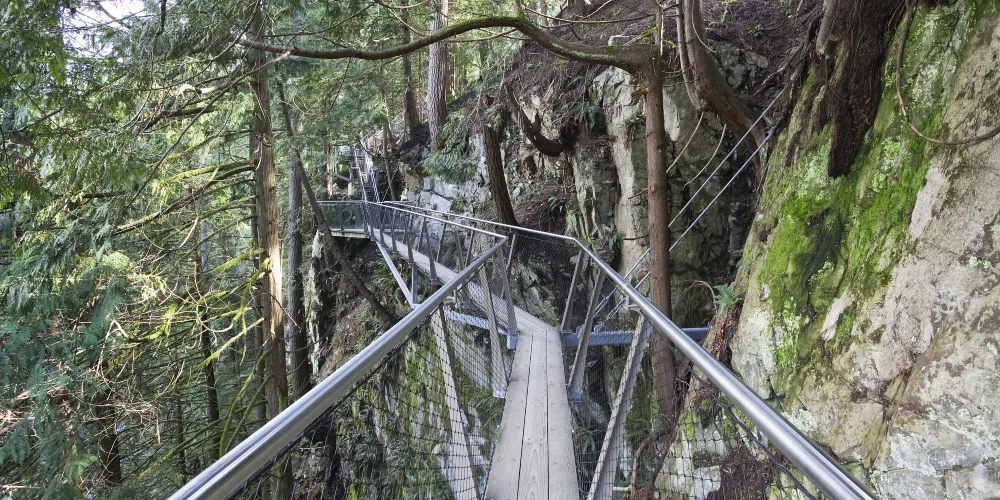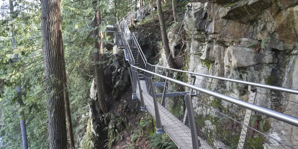 懸崖棧道是温哥華卡皮拉諾吊橋公園全新的旅遊項目,這驚心動魄的懸崖之旅需要遊客沿着從卡皮拉諾河上方的花崗巖懸崖上伸出的巖壁和棧道,穿過雨林植被,前往公園原先人跡罕至的區域。