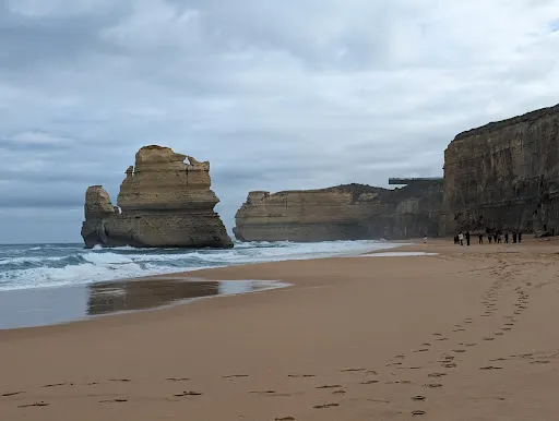 是19世紀的當地地主休•吉布森在懸崖上人工開鑿出來的,走下呈之字形排布的86級台階,便能到達吉布森海灘(Gibson Beach)。海灘的海浪很大,不適合遊泳,你可以散步、看海鷗,最大的好處在於從這裡可以近距離觀賞十二門徒岩中的兩塊巨大岩石。