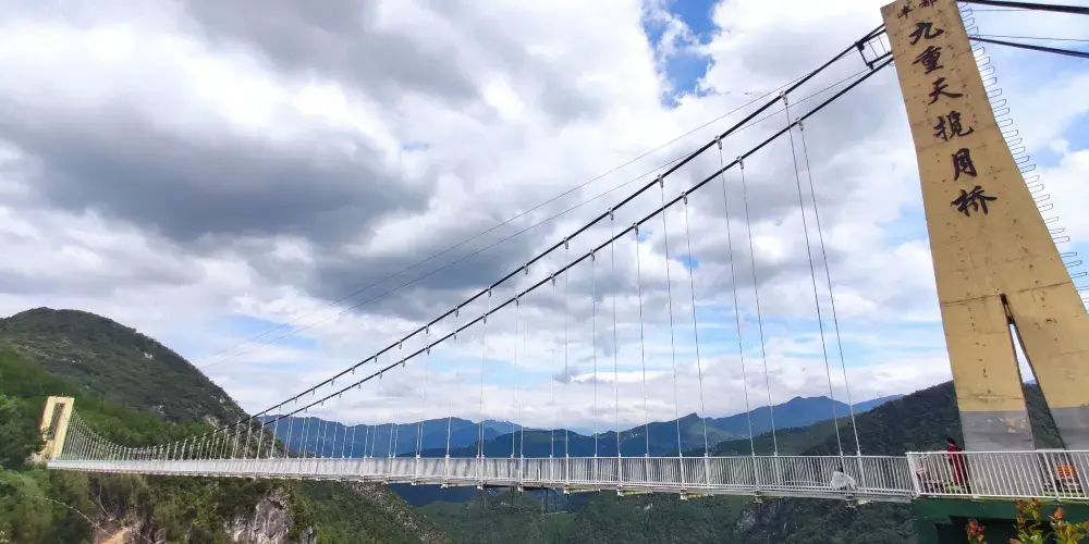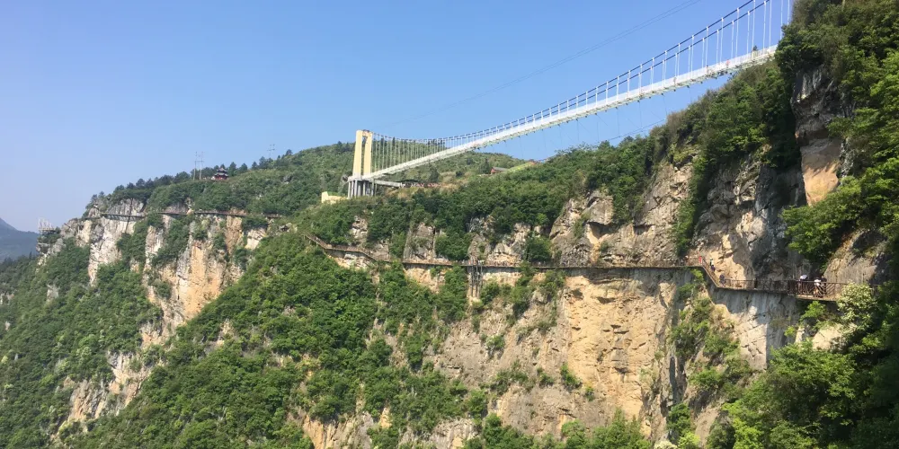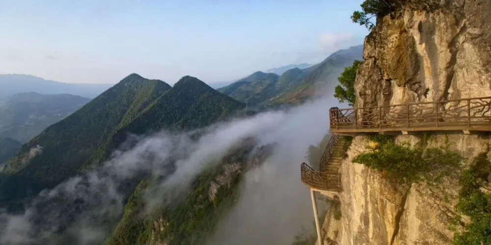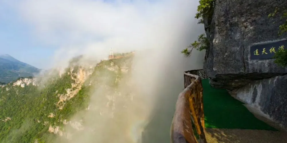 豐都連天棧道位於雙路鎮安寧場村,棧道起於鍋圈岩,止於橫梁子。其地勢陡峭,刀削絕壁,上至九重,飛渡凌宵。它以獨特的地質奇觀和險要的觀光體驗,成為龍河濕地的點睛之筆,遊客在飽龍河峽谷秀美風光的同時,亦可體驗探險的樂趣。棧道沿途有3D魔幻平台、龍王谷、三清境、君臨台、福緣洞、龍吟九天壁、獵鷹岩、蝙蝠崖九大奇觀。同時,懸空玻璃棧道、風洞梁遠眺奇觀等趣味景觀讓遊客流連忘返。