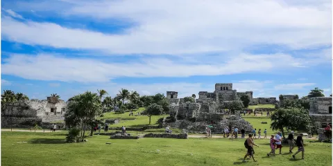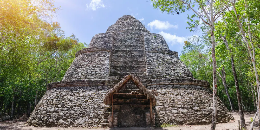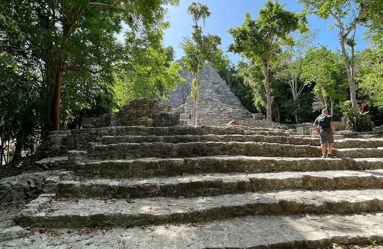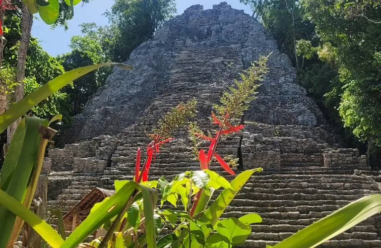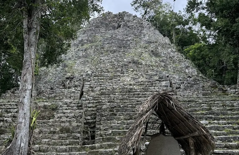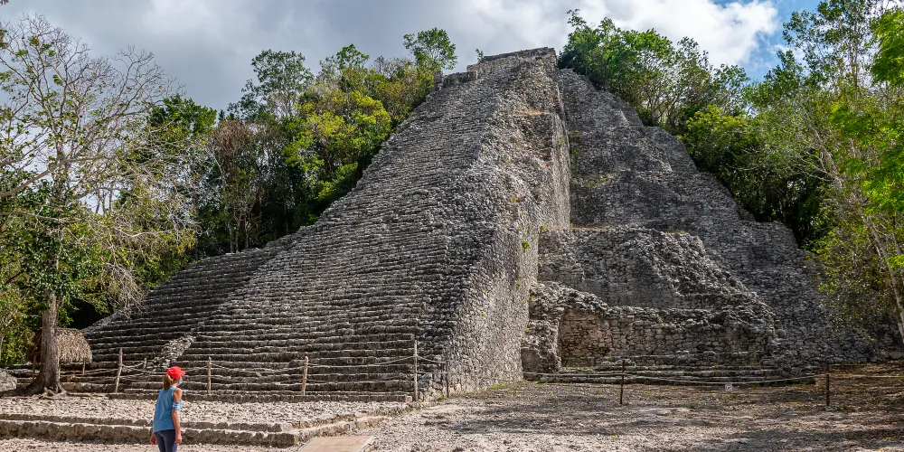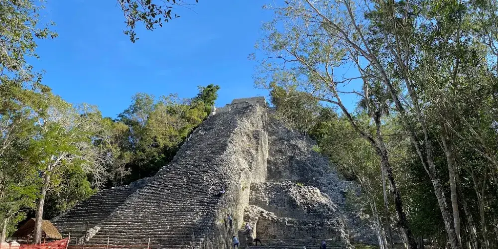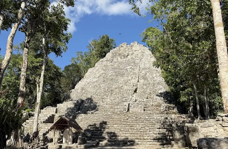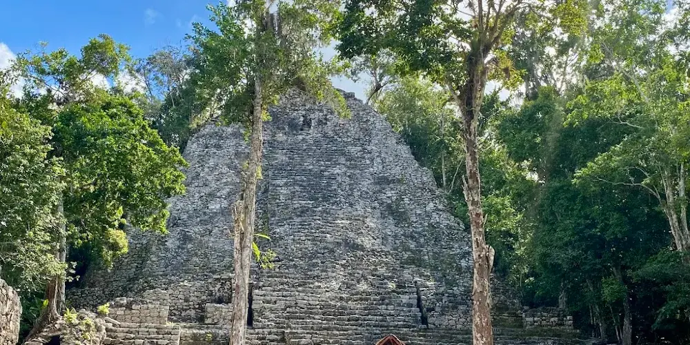 科巴遺址位於熱帶雨林深處,叢林裡散落了超過6500座瑪雅建築,現在只有一小部分被發掘和複原。遺址內的重要建築有高達42米的“大金字塔”Nohoch Mul,這是瑪雅文明中最高的建築。據推測在鼎盛時期,這裡約有五萬住民或者甚至更多,是目前發現的最大的瑪雅遺址。