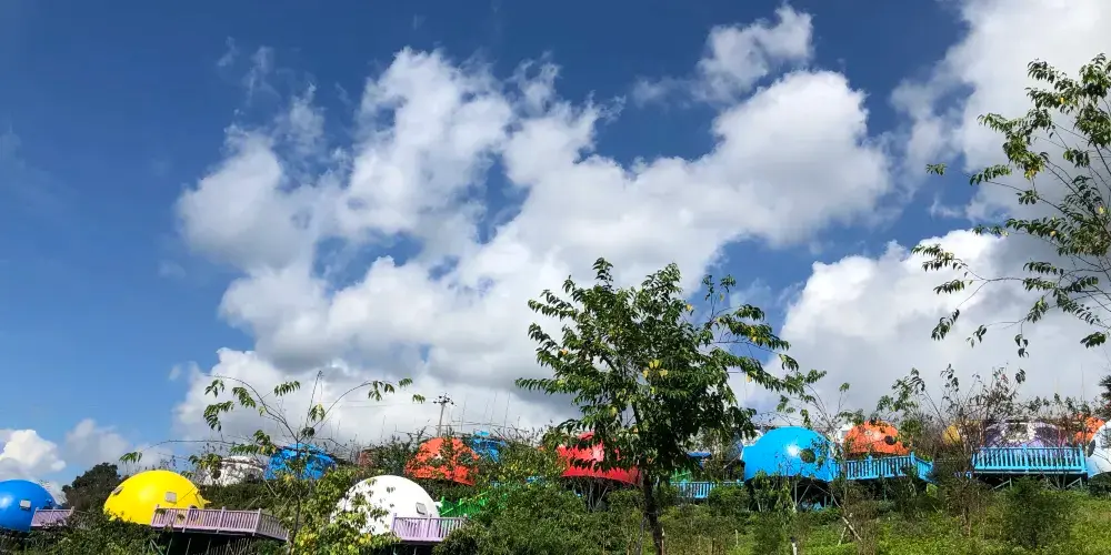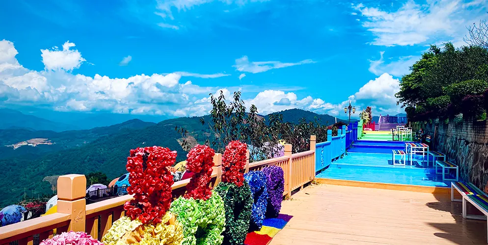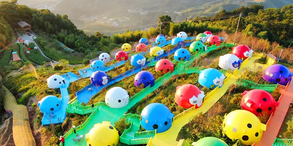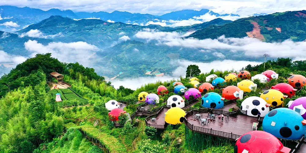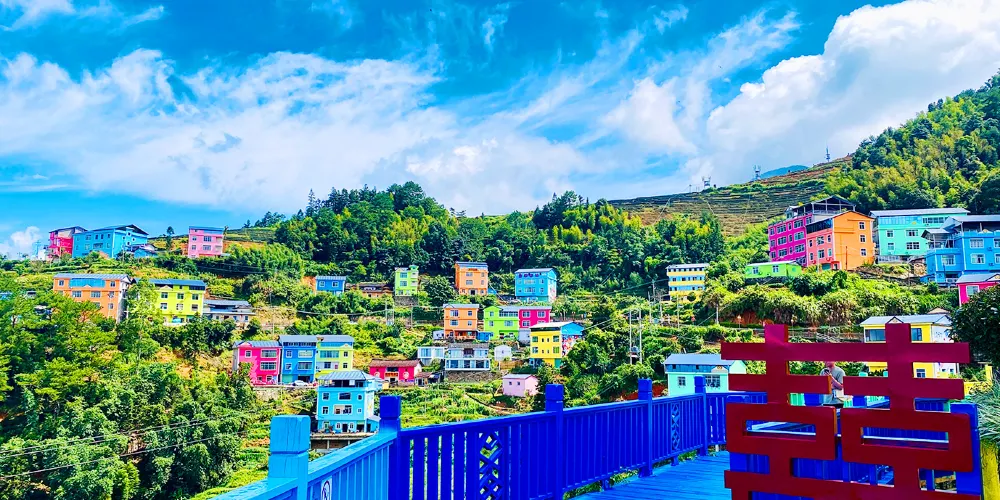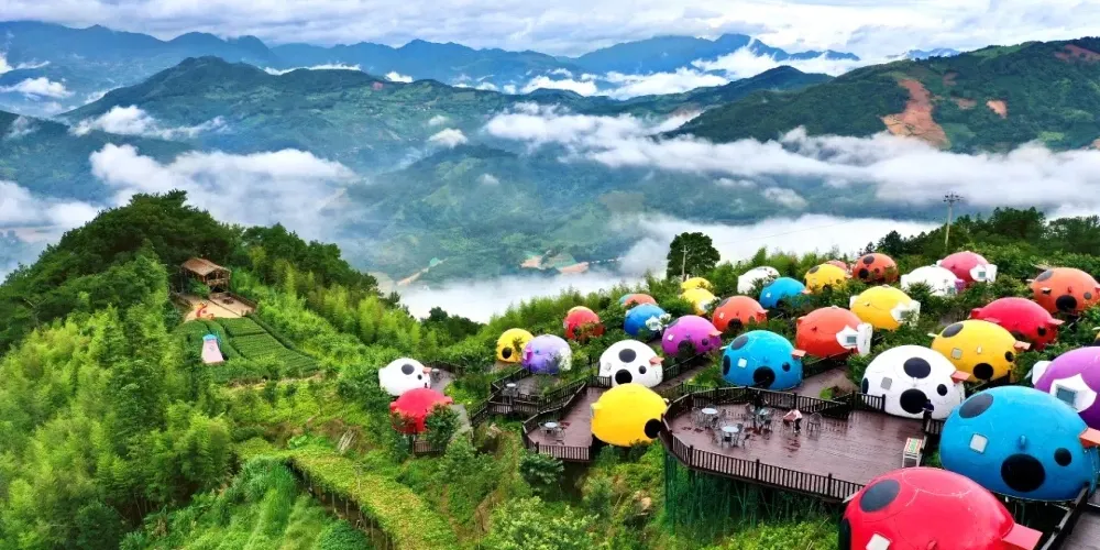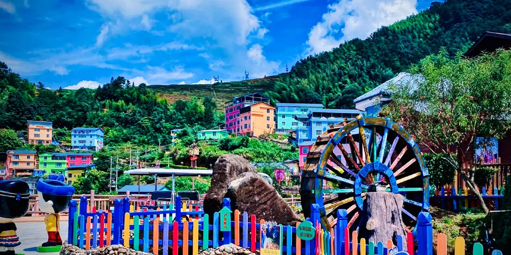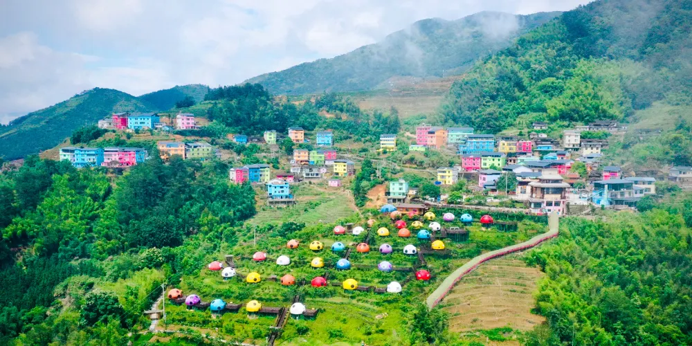 七彩官畲景區內有備受遊客青睞的七星瓢蟲屋,瓢蟲屋坐落於櫻花叢中,推開窗可見雲捲雲舒;鳳凰台每天演繹多場純粹的畲歌和原生態的畲鄉風情舞蹈;色彩斑斕的彩虹橋直通寧靜村落。喜歡拍照的遊客可在大型相框、浪漫鞦韆等多處拍照“打卡”。景區內各個角落繪有諸多畲族圖騰和彩繪。