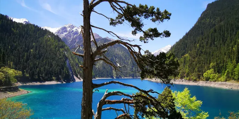 長海是九寨溝很長的1個海子,長達幾公里,呈墨藍色,“S”形分佈。海旁林木茂密,一眼望去,壯觀的雪峰,還有典型的冰川景觀,都沐浴在藍天白雲之中。長海四周沒有出水口,水源來自於高山融雪。奇怪的是,長海從不會乾涸,也不會溢堤,因此藏民稱之為“裝不滿,漏不干”的寶葫蘆。