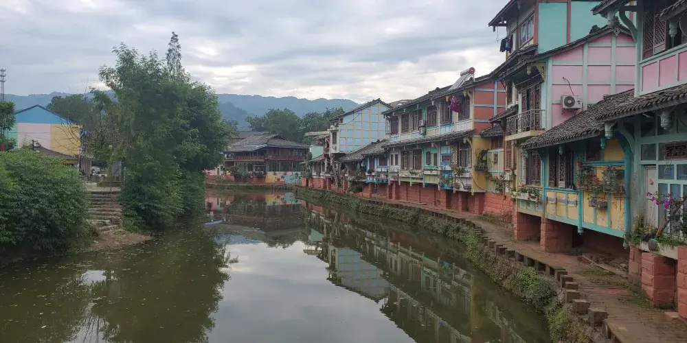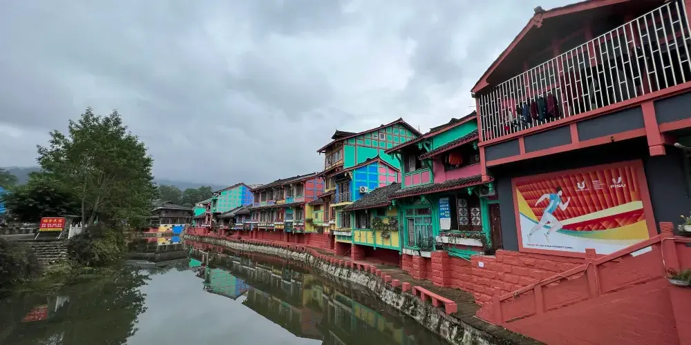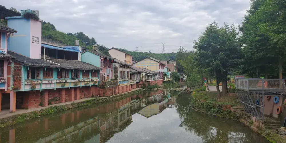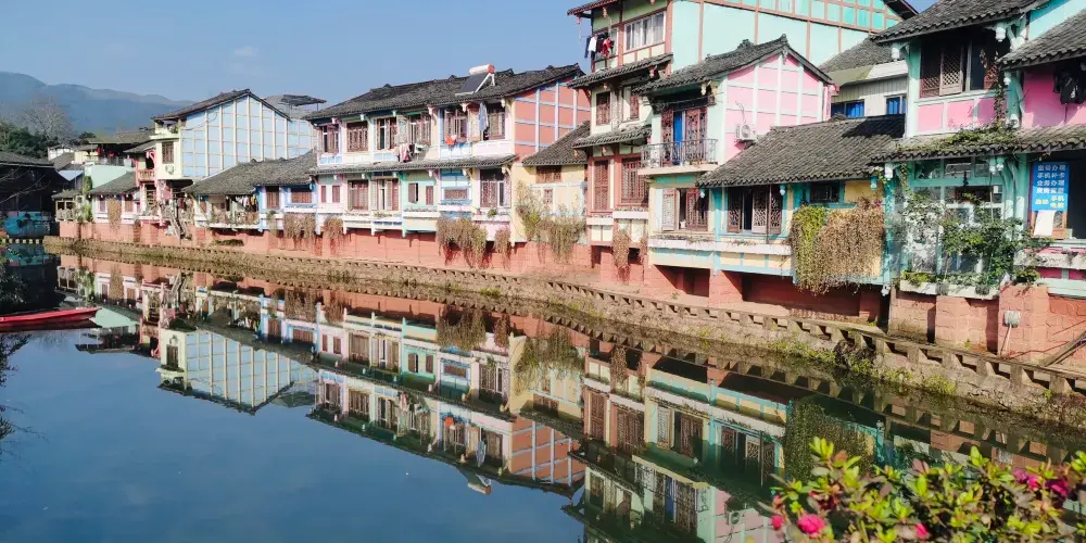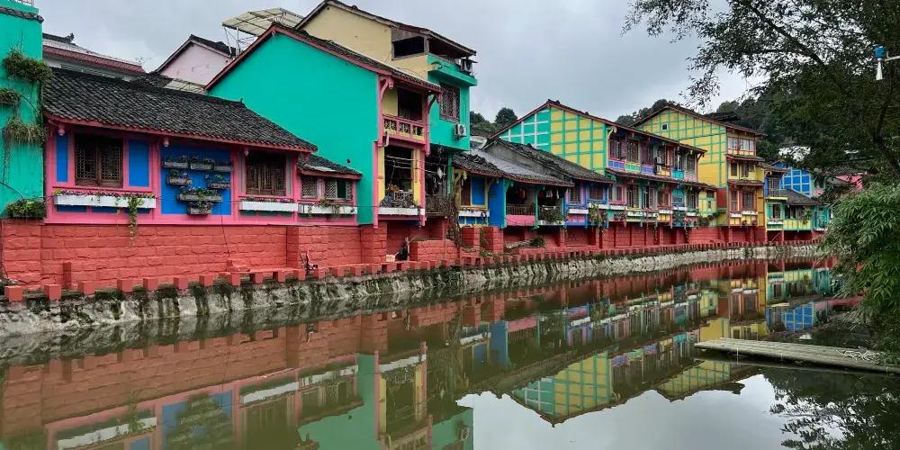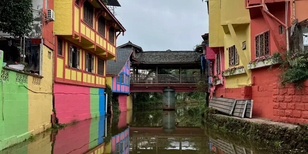 成都周邊也有一個彩色小鎮,顏色就像彩虹,古樸和後現代相結合,有點像歐洲威尼斯的彩色島。