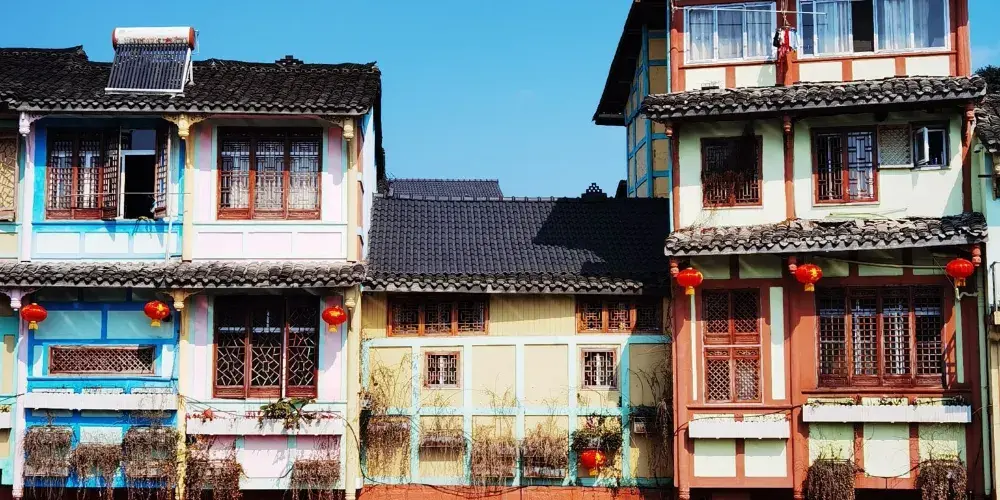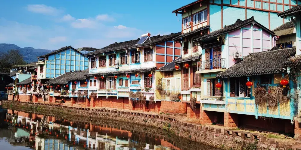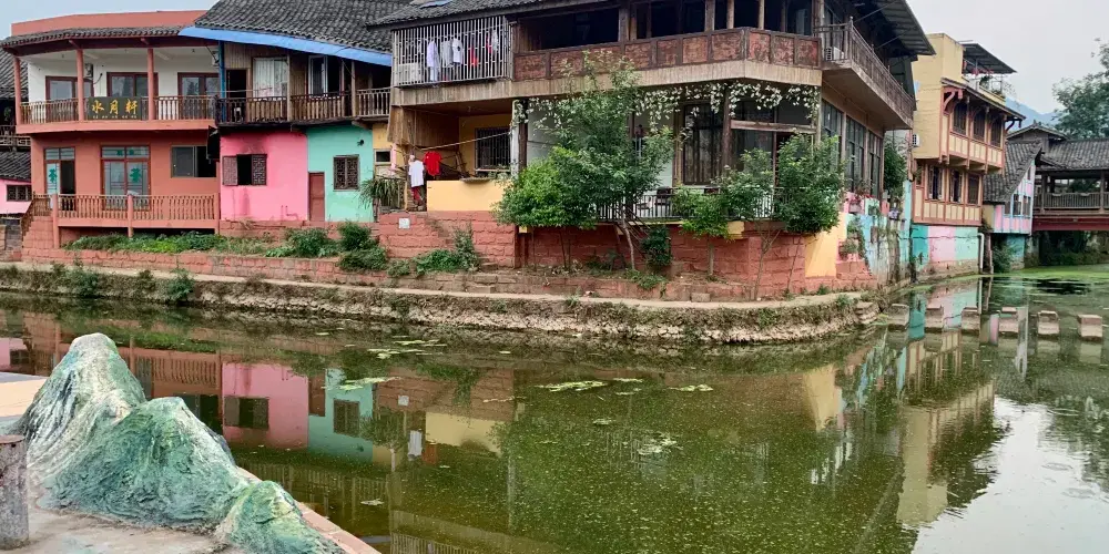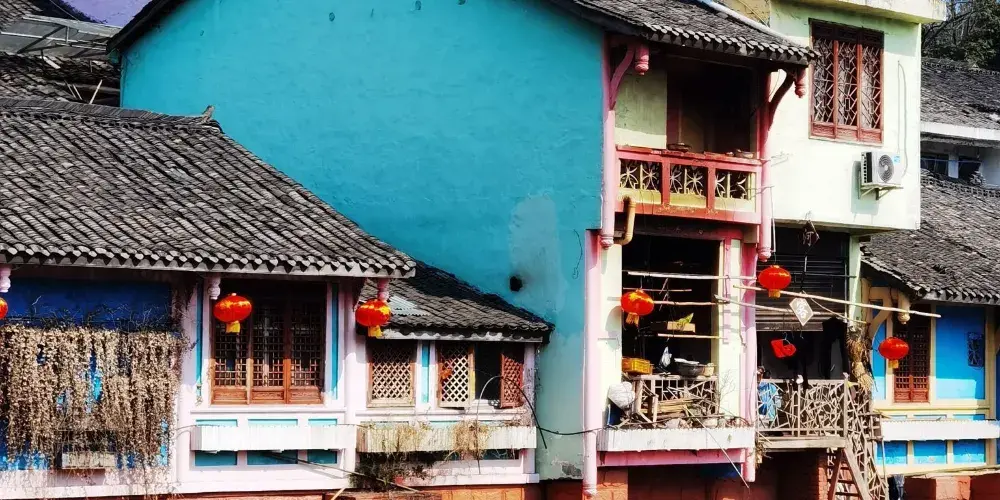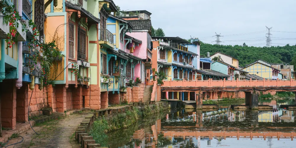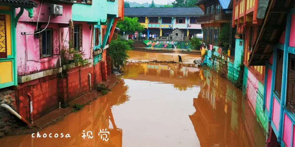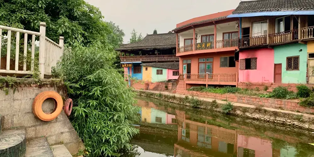 成都周邊也有一個彩色小鎮,顏色就像彩虹,古樸和後現代相結合,有點像歐洲威尼斯的彩色島。