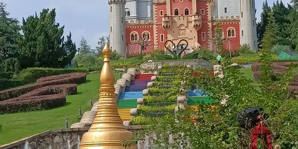 在仿造的世界建築奇觀中,德國新天鵝堡、亞歷山大燈塔、意大利聖三山教堂等建築是園中醒目的「奇觀」。園中還有展示悠久的湖湘文化的「湘江谷」,谷內建有仿製的吊腳樓、嶽麓書院、鳳凰古城門等湖南省內嘅知名景點同名勝建築。