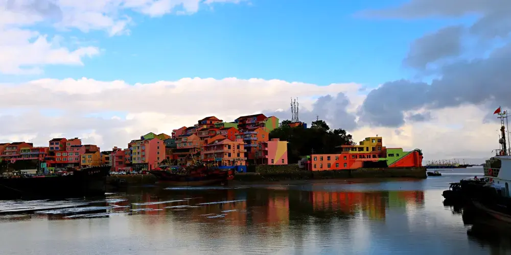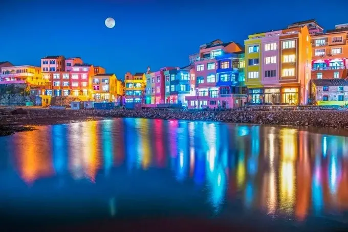 在這個村子裡,每間房屋都被刷成了不同的顏色,顏色讓人看起來十分舒服,房屋錯落有致,走在這裡就彷彿置身於童話世界。漁民的漁船都停靠在岸邊,每到傍晚的時候,晚霞映著海水,岸邊一排排整齊的小漁船,給人一種寧靜舒適的感覺。