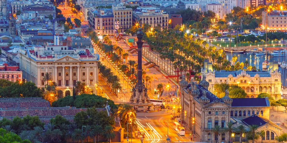 哥倫布紀念碑位於靠近巴塞羅那港口的蘭布拉大街盡頭,是為了紀念哥倫布環球之旅的壯舉而建。紀念碑用赭紅色大理石建成,上有哥倫布雕像。紀念碑碑身雕刻有五名女神凌空飛舞,上有光榮屬於哥倫布和向哥倫布致敬兩行西班牙文大字,底座四周則有八隻石獅守護,威嚴肅穆。