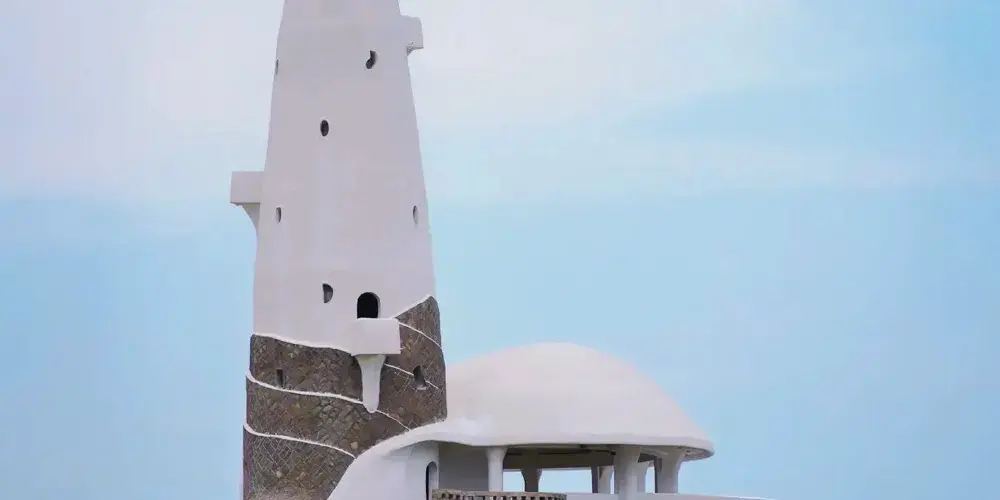 福建省長樂縣的海螺塔,是下沙度假村的組成部分,也是我國為數不多的“象徵主義”建築之一。取自海螺海蚌的外部造型,使建築與自然環境融為一體。