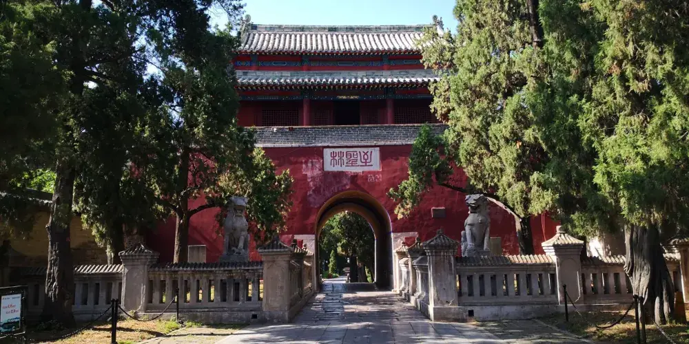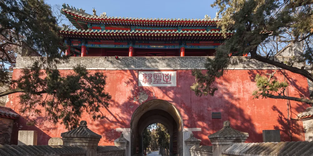 孔林位於曲阜城北,又稱“至聖林”,是孔子及其家族後裔的墓地。公元前479年,孔子埋葬在這里以後,他的子孫後代去世後都埋葬在這個地方,到現在林內已約有十萬餘座墳塚。孔林是我國規模很大、持續年代久遠、保存完整的一處氏族墓葬群和人工園林。