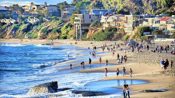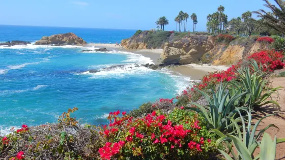 拉古納海灘位於美國加州的橙縣,以其壯麗的海岸線和藝術氛圍聞名。原來是私人海灘,後來成為好萊塢明星的私藏地,現在則成為藝術家聚集的度假勝地,每年都會舉辦大大小小各種類型的藝術節。這裡的海灘以細膩的沙灘和清澈的海水吸引遊客,是游泳、衝浪和日光浴的理想場所。沿海的懸崖和潮汐池為徒步旅行者和自然愛好者提供了探索的機會。
